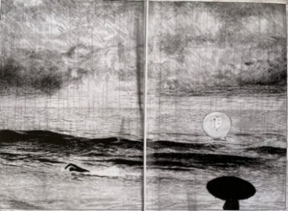 それを見ていた女性は、「あなたすてきよ」「いい感じよ」と言うのだが、最後の場面は、見開き2ページで、泳ぐ青年とそれを見つめる女性がシルエットで描かれます。